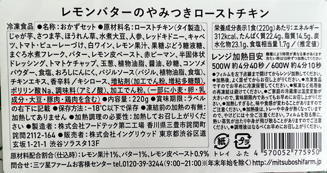 こちらの冷凍おかずには4種類の添加物が使用されていました。